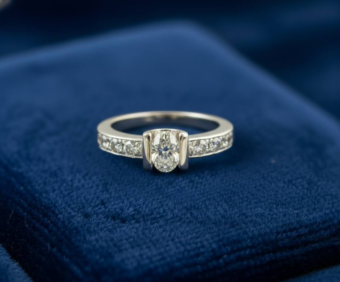 14 karaat wit gouden ring met diamanten