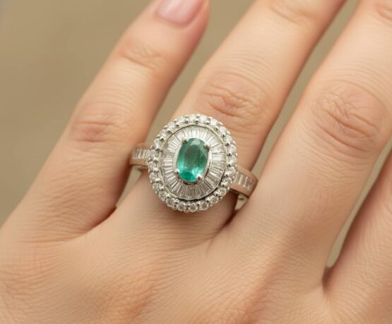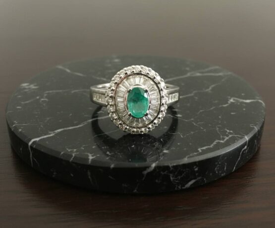 Wit gouden ring met diamant en smaragd