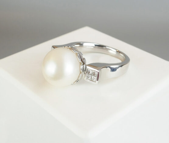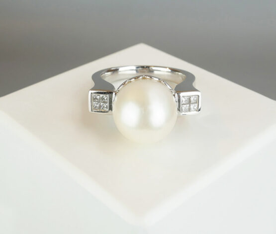Deze wit gouden ring met parel en princess is een prachtig sieraad om te dragen.