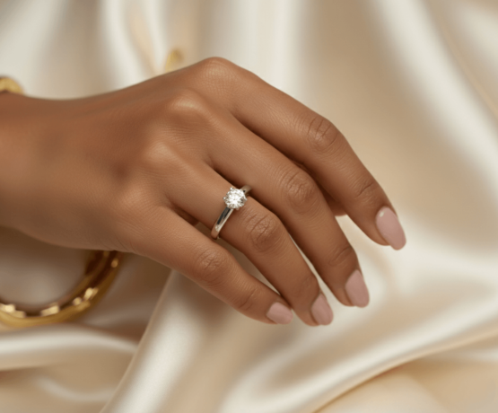Do you love white gold? This beautiful solitaire ring with brilliant-cut diamonds is crafted from 14-karat white gold. Many jewelry pieces are available in white gold because it exudes luxury and symbolizes wealth. White gold represents strength and friendship. Jewelry in this color has a fashionable look. Shop our extensive white gold collection and shine today with a stunning piece of jewelry.