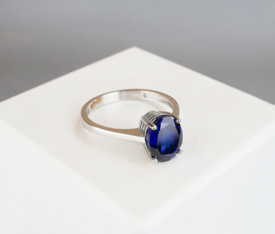 Deze wit gouden ring met synthetische saffier is een prachtig sieraad om te dragen.