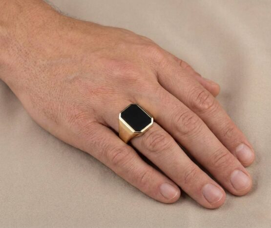 Deze Christian geel gouden onyx zegelring is een prachtig sieraad.
