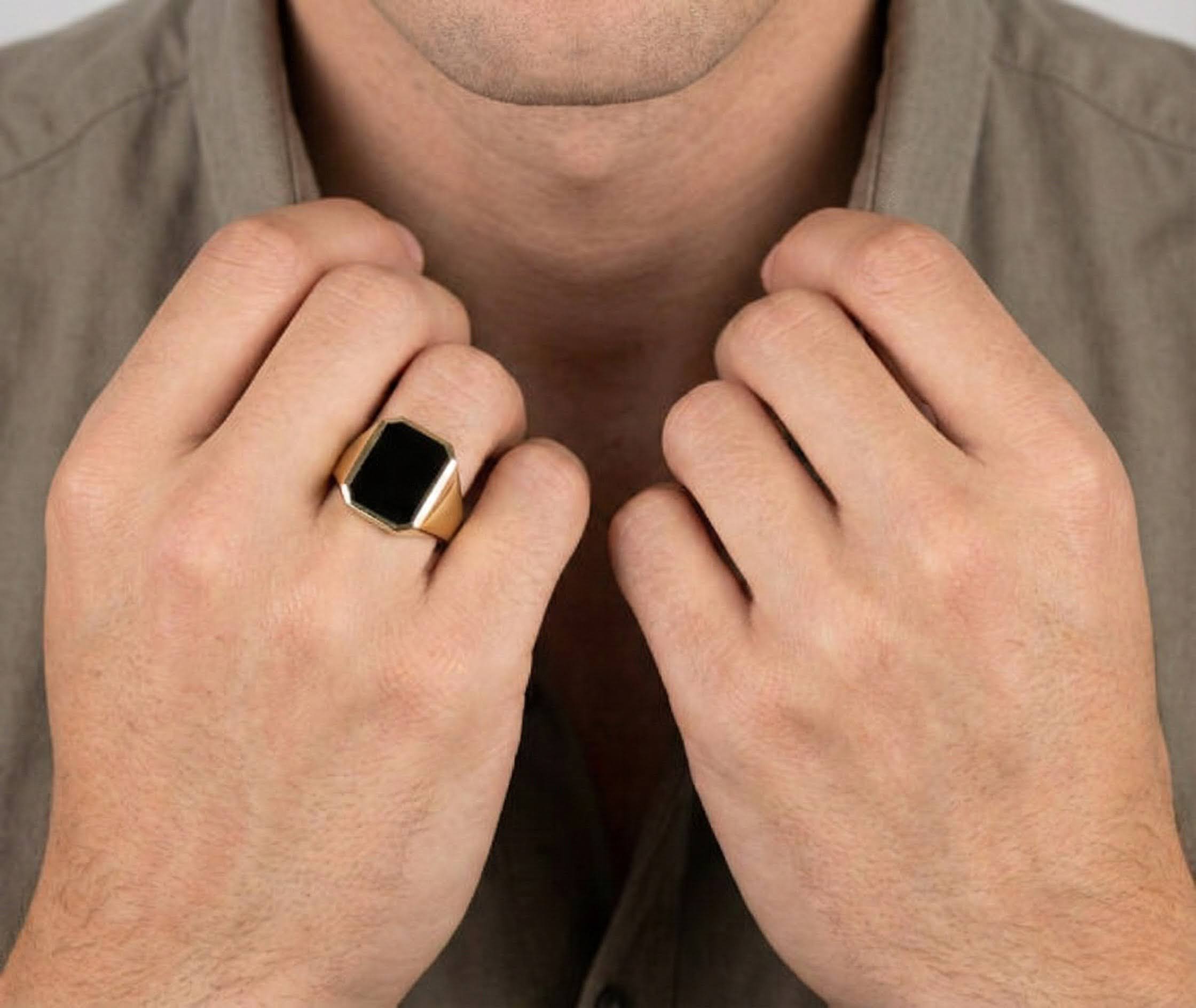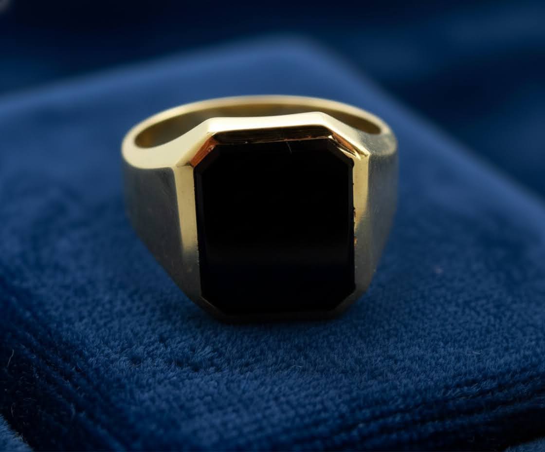 Deze Christian geel gouden onyx zegelring is een prachtig sieraad.
