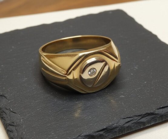 Geel en wit gouden cachet ring met diamant