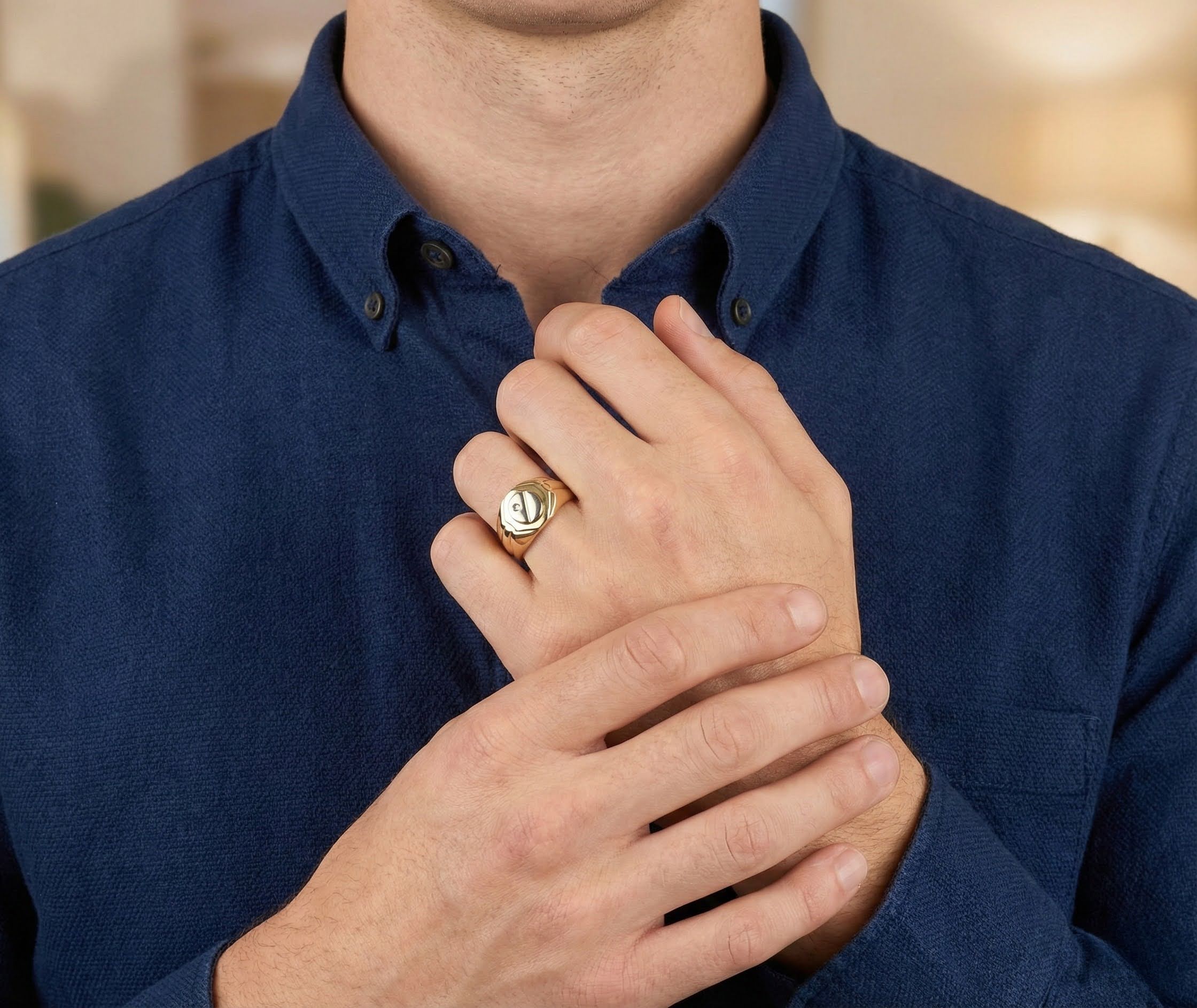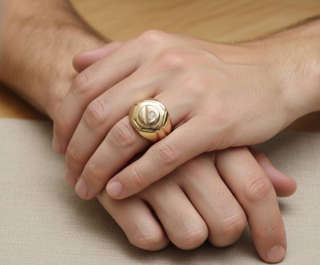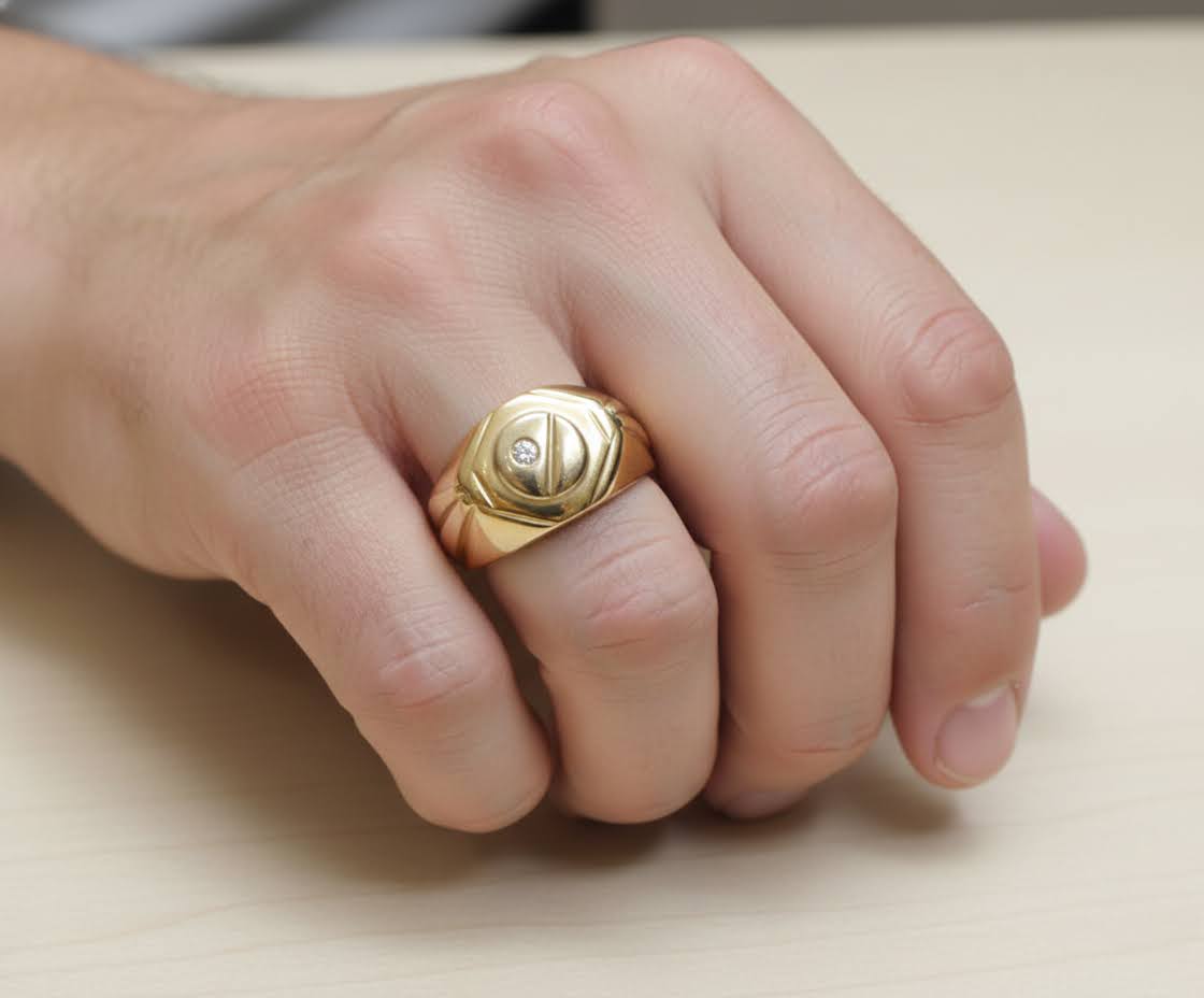 Geel en wit gouden cachet ring met diamant