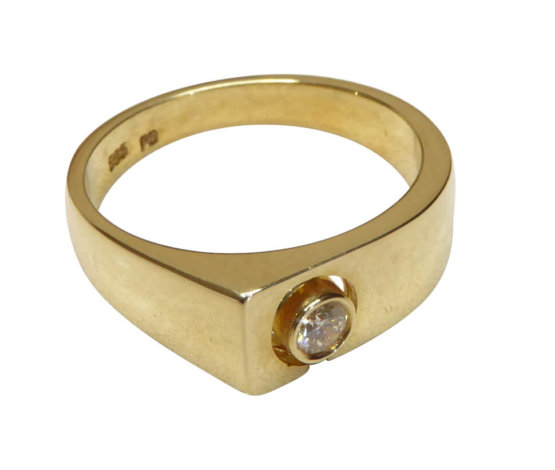 De geel gouden cachet ring met diamant is een prachtig sieraad om te dragen. Zegelringen zijn zeer gewild als symbool van uw unieke identiteit.