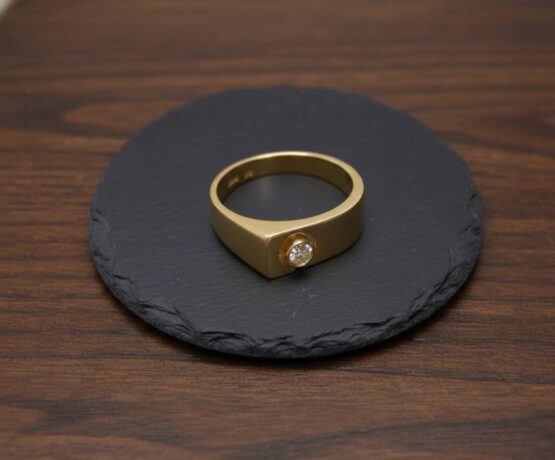 De geel gouden cachet ring met diamant is een prachtig sieraad om te dragen. Zegelringen zijn zeer gewild als symbool van uw unieke identiteit.