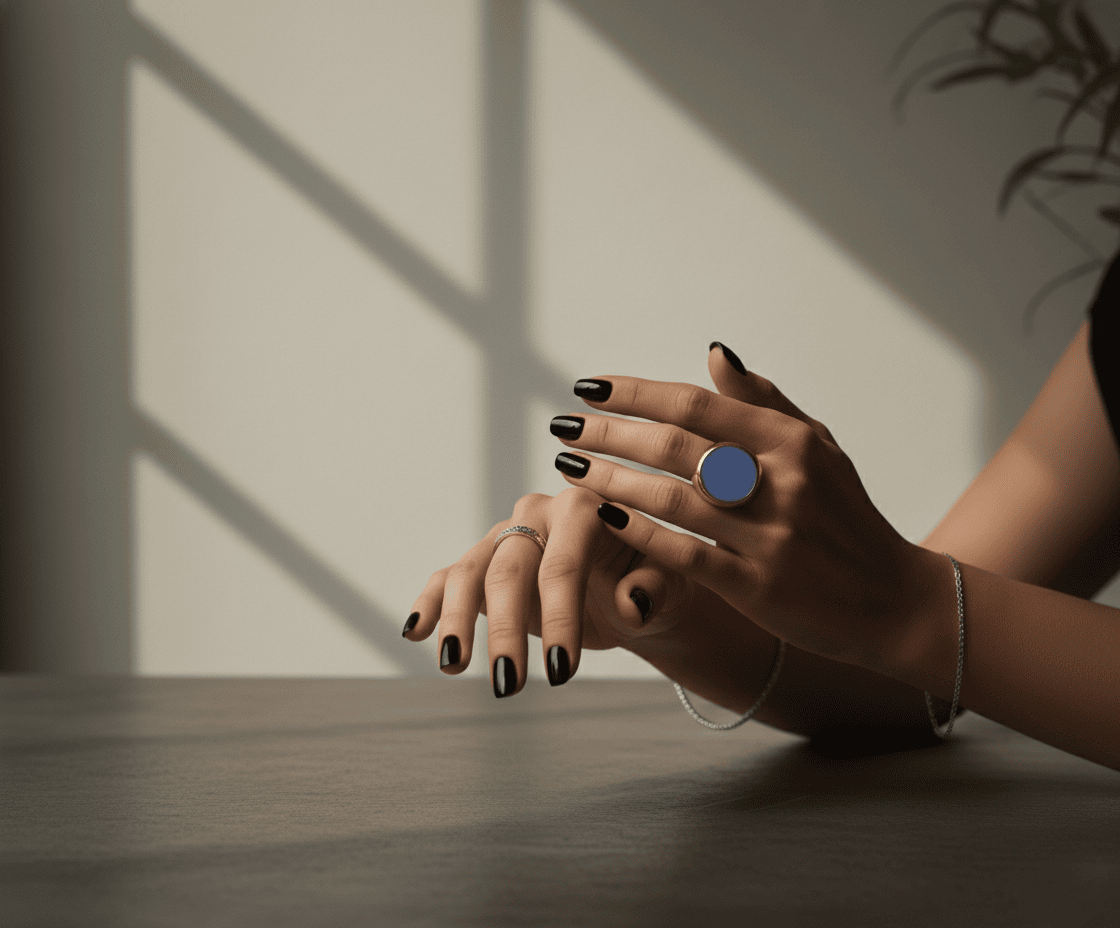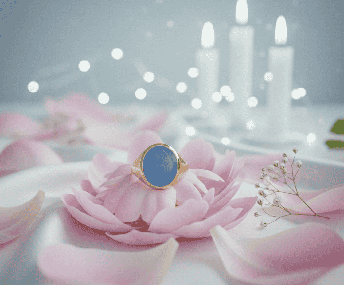 Lagensteen is de in de edelsteen-snijkunst gebruikte gelaagde materiaal. Een lagensteen wordt gesneden uit agaat. Agaat is een gestreepte halfedelsteen en een variëteit van het mineraal kwarts. Er zijn veel verschillende soorten kleuren, patronen en structuren lagensteen. De ring heeft een mooie licht- tot donkerblauwe kleur. Wilt u een gravure in uw lagensteen ring? De Goudsmid van Atelier Christian heeft jarenlange ervaring in gravure. Onze vakmanschap staan garant voor de hoge kwaliteit van het persoonlijke eindresultaat van uw lagensteen ring.