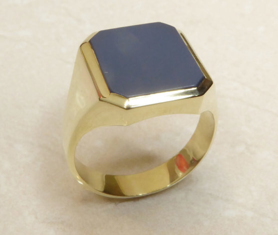 Lagensteen is de in de edelsteen-snijkunst gebruikte gelaagde materiaal. Een lagensteen wordt gesneden uit agaat. Agaat is een gestreepte halfedelsteen en een variëteit van het mineraal kwarts. Er zijn veel verschillende soorten kleuren, patronen en structuren lagensteen. De ring heeft een mooie licht- tot donkerblauwe kleur. Wilt u een gravure in uw lagensteen ring? De Goudsmid van Atelier Christian heeft jarenlange ervaring in gravure. Onze vakmanschap staan garant voor de hoge kwaliteit van het persoonlijke eindresultaat van uw lagensteen ring.