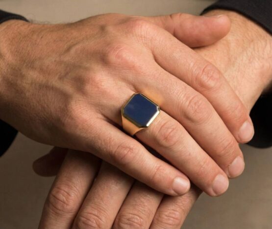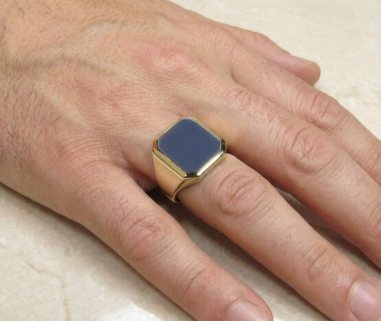 De gouden blauwe lagensteen cachet ring is een prachtig sieraad om te dragen. Zegelringen zijn zeer gewild als symbool van uw unieke identiteit.