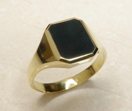 De gouden cachet ring met heliotroop is een prachtig sieraad om te dragen. Zegelringen zijn zeer gewild als symbool van uw unieke identiteit.