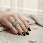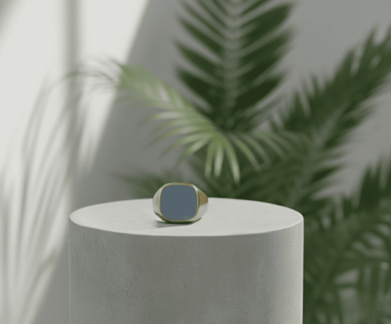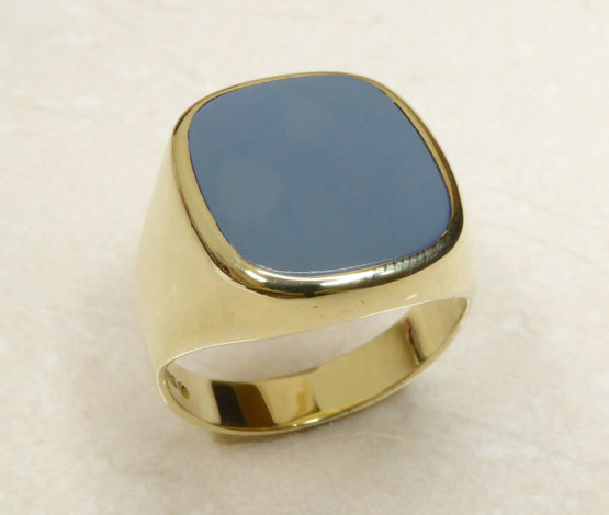 Lagensteen is de in de edelsteen-snijkunst gebruikte gelaagde materiaal. Een lagensteen wordt gesneden uit agaat. Agaat is een gestreepte halfedelsteen en een variëteit van het mineraal kwarts. Er zijn veel verschillende soorten kleuren, patronen en structuren lagensteen. De ring heeft een mooie licht- tot donkerblauwe kleur. Wilt u een gravure in uw lagensteen ring? De Goudsmid van Atelier Christian heeft jarenlange ervaring in gravure. Onze vakmanschap staan garant voor de hoge kwaliteit van het persoonlijke eindresultaat van uw lagensteen ring.