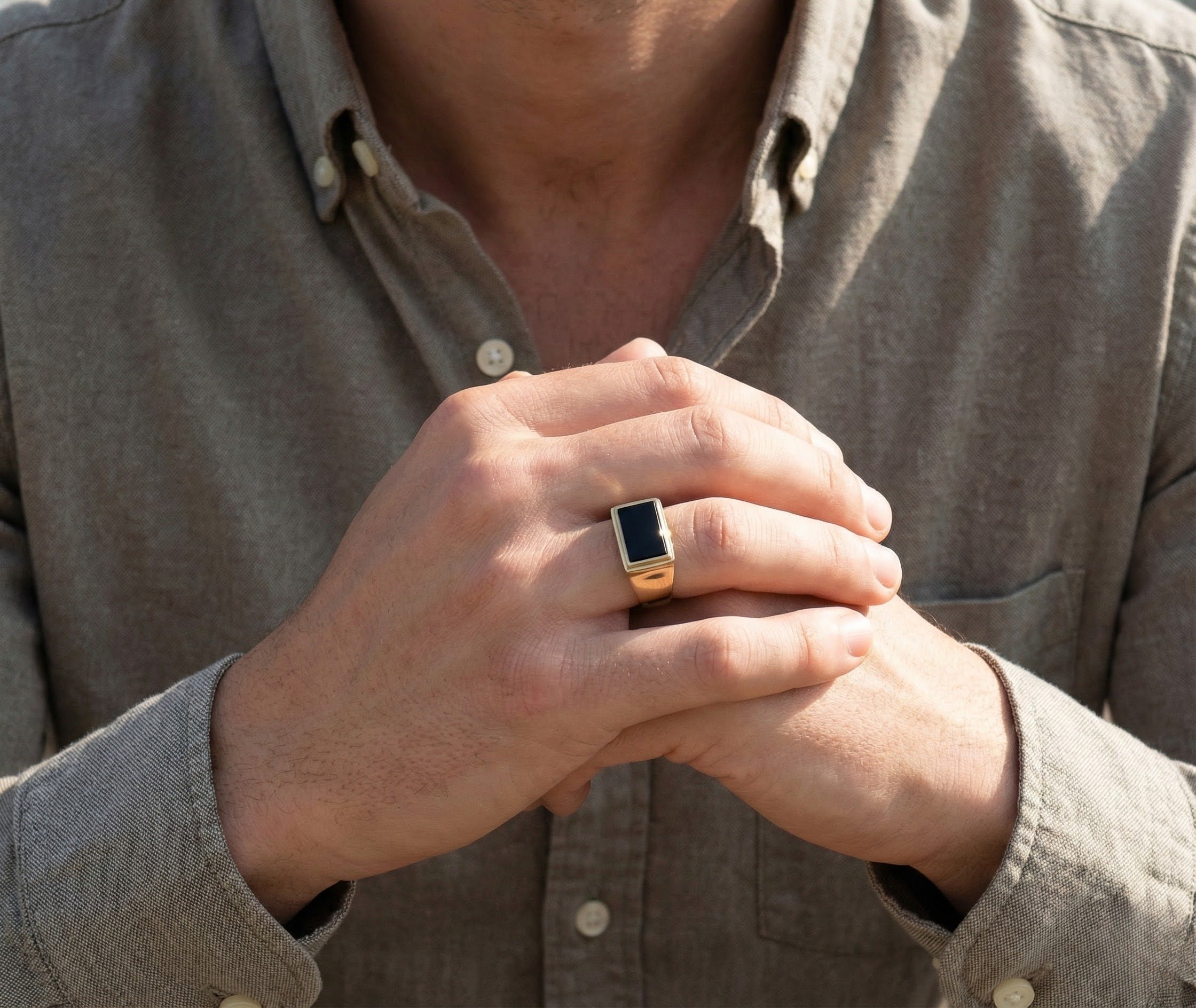 De gouden onyx cachet ring is een prachtig sieraad om te dragen. Zegelringen zijn zeer gewild als symbool van uw unieke identiteit.