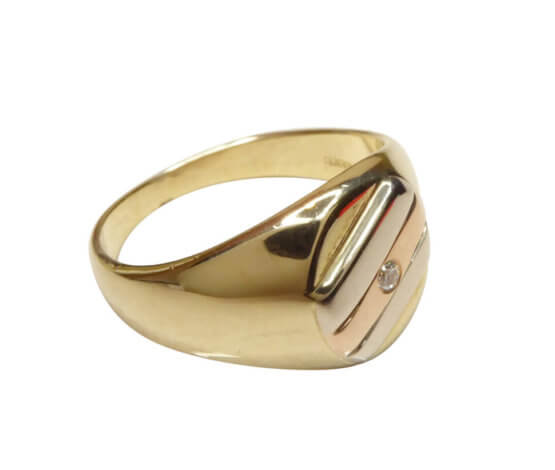 De gouden tricolor cachet ring met diamant is een prachtig sieraad om te dragen. Zegelringen zijn zeer gewild als symbool van uw unieke identiteit.