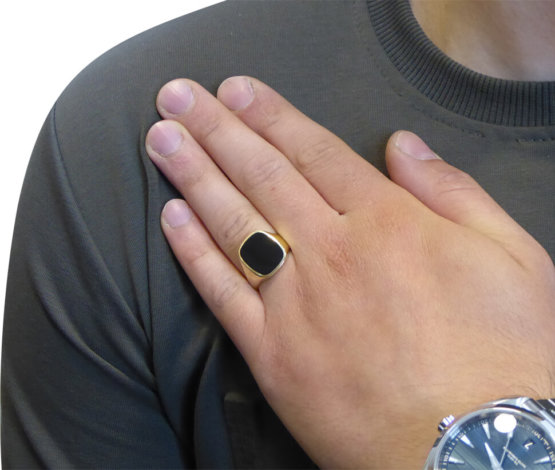 De gouden zegelring met onyx is een prachtig sieraad om te dragen. Zegelringen zijn zeer gewild als symbool van uw unieke identiteit.