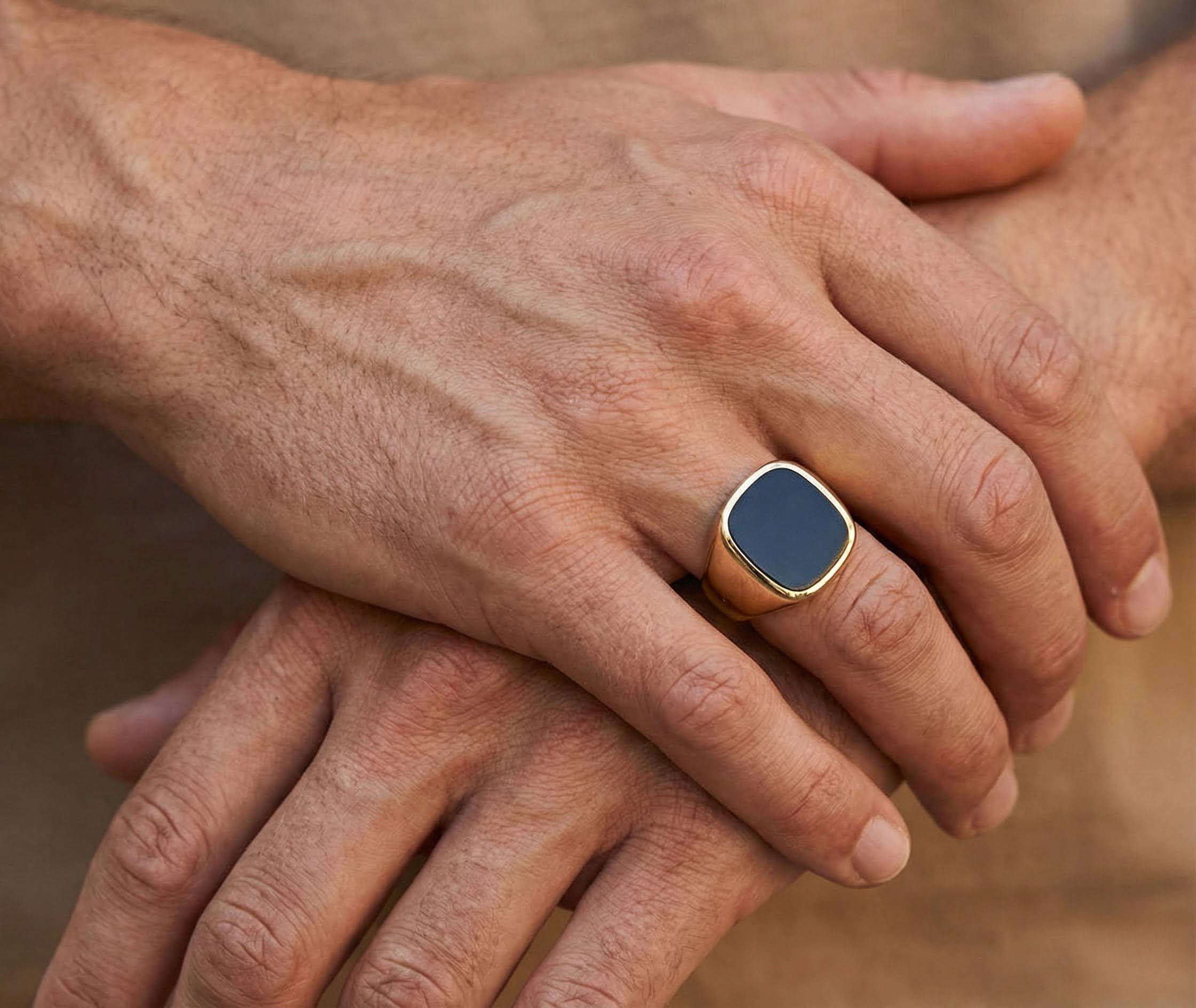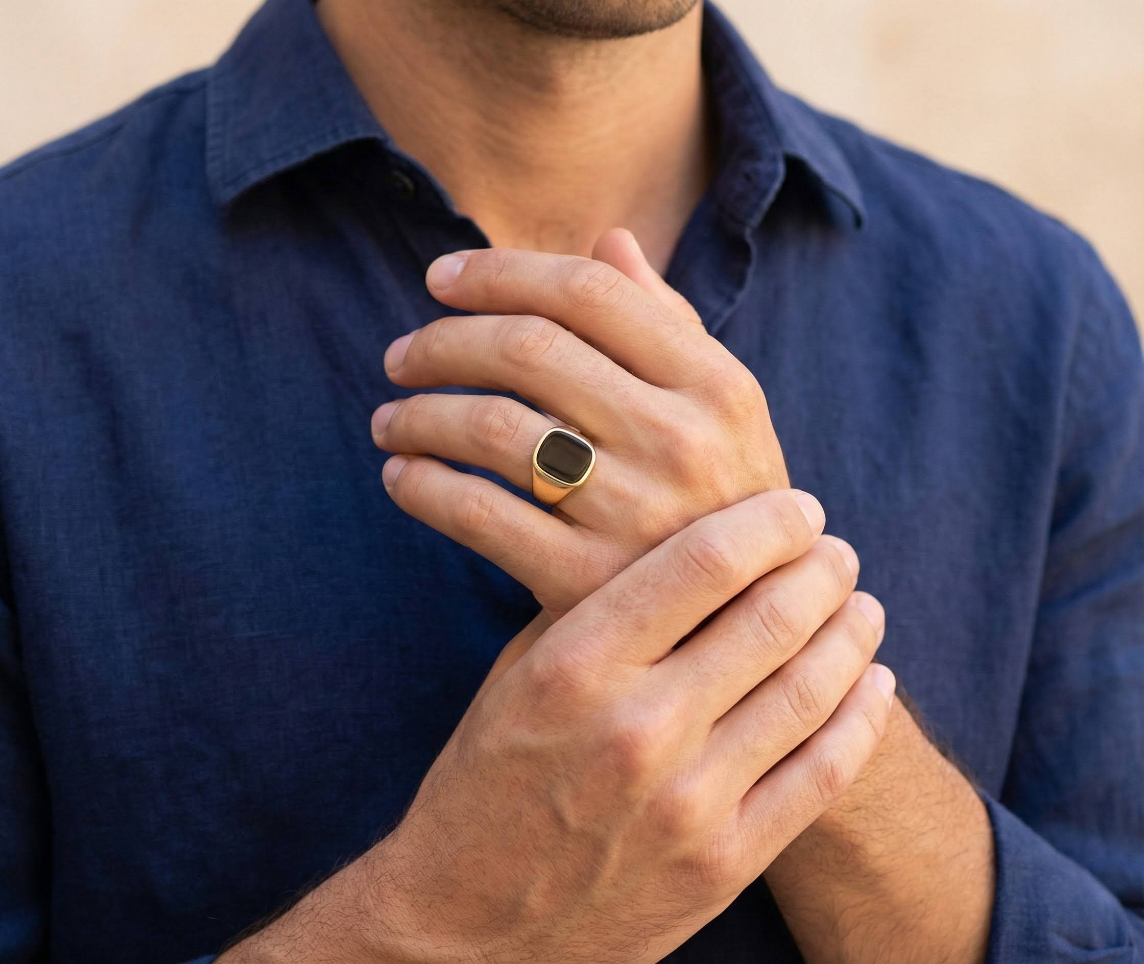 De gouden zegelring met onyx is een prachtig sieraad om te dragen. Zegelringen zijn zeer gewild als symbool van uw unieke identiteit.