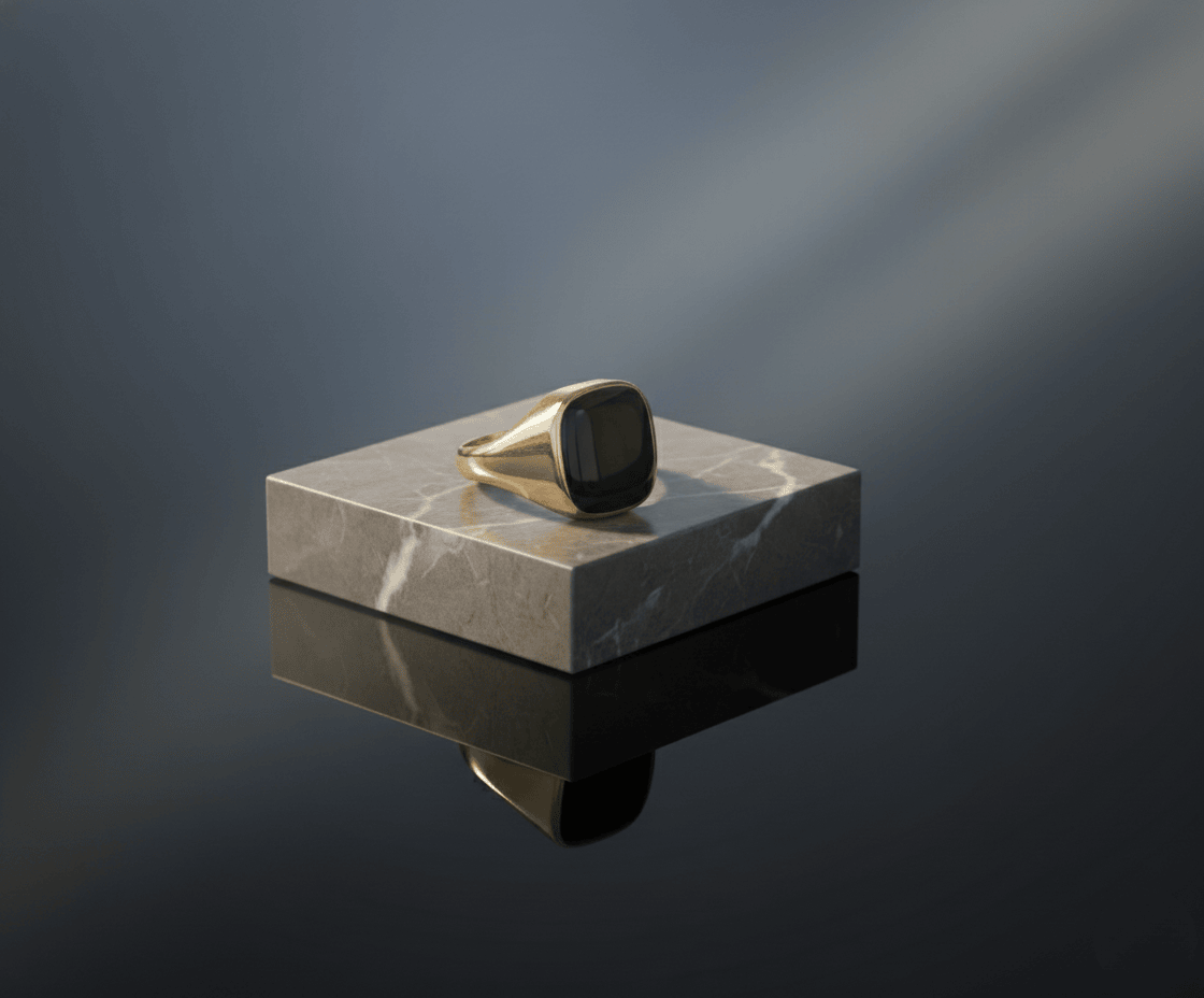 De gouden zwarte lagensteen cachet ring is een prachtig sieraad om te dragen. Zegelringen zijn zeer gewild als symbool van uw unieke identiteit.