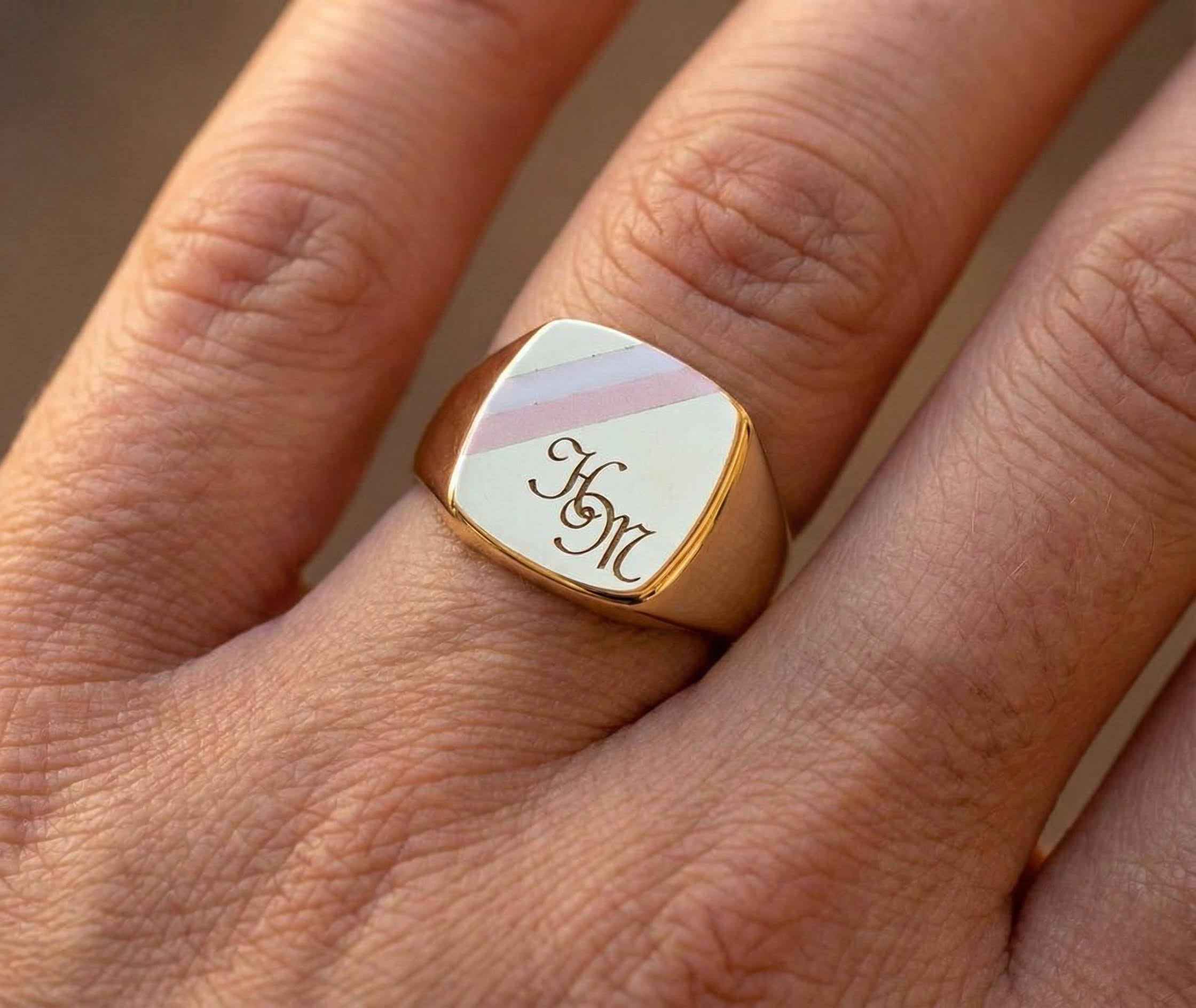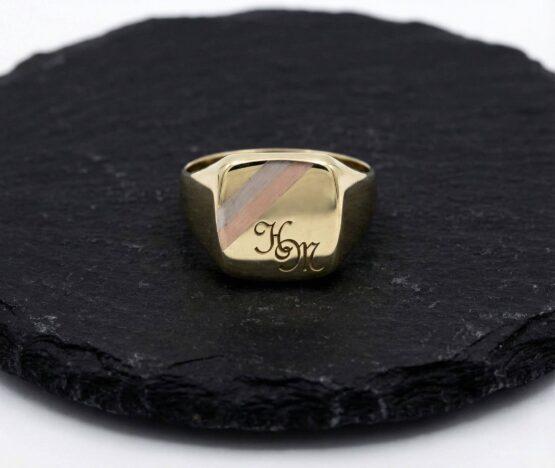 De tricolor gouden zegelring met gravering is een prachtig sieraad om te dragen. Zegelringen zijn zeer gewild als symbool van uw unieke identiteit.