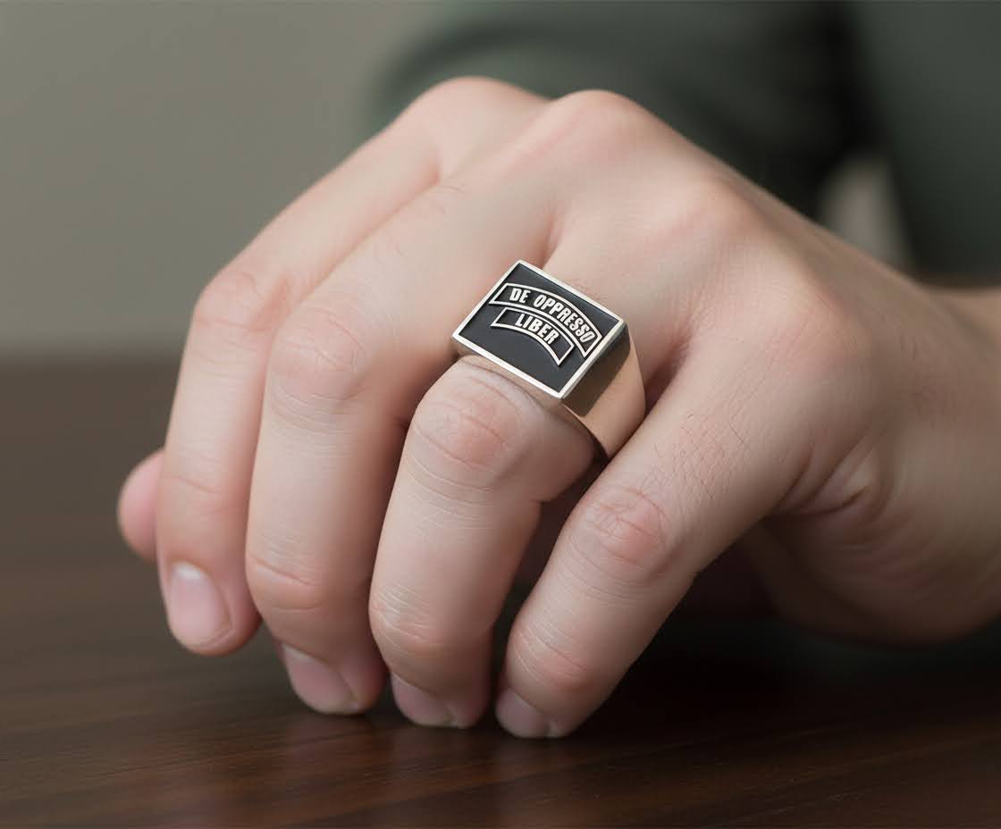 Wilt u een familiewapen op een blauwlagensteen? Of een originele Latijnse motto op een witgouden ring zoals de zilveren zegelring De Oppresso Liber? Bij Atelier Christian vindt u uw eigen zegelring voor een bijzonder gunstige prijs. U bedenkt het, wij ontwerpen het.