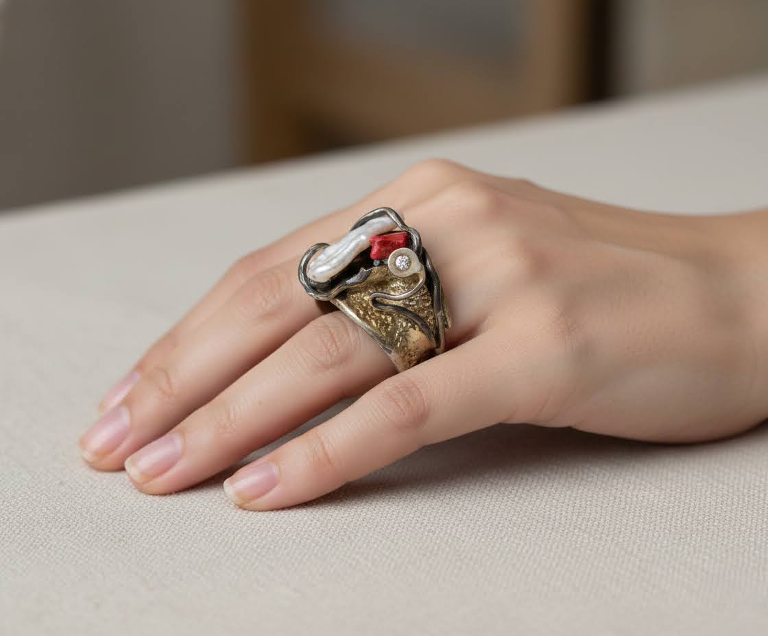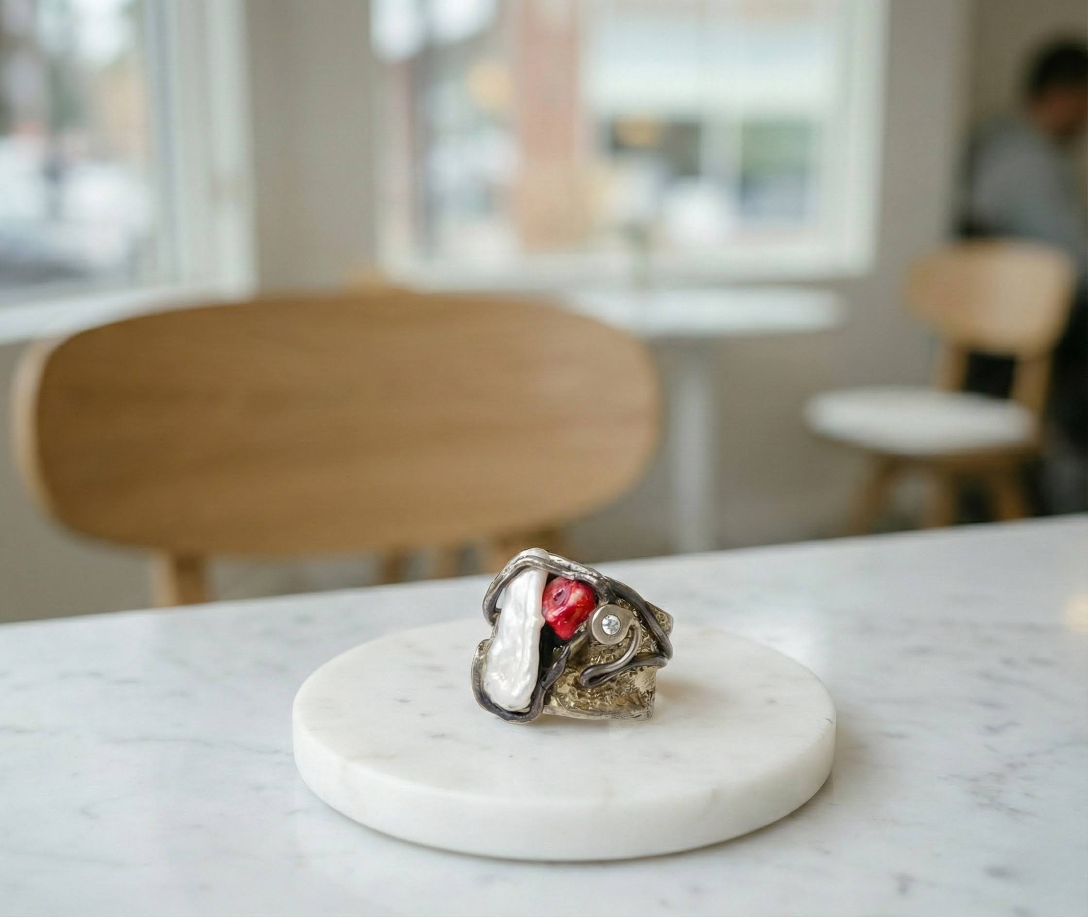 Draagt u graag unieke ringen? Bestel uw zilveren ring met parel en rhodoniet via atelierchristian.nl!