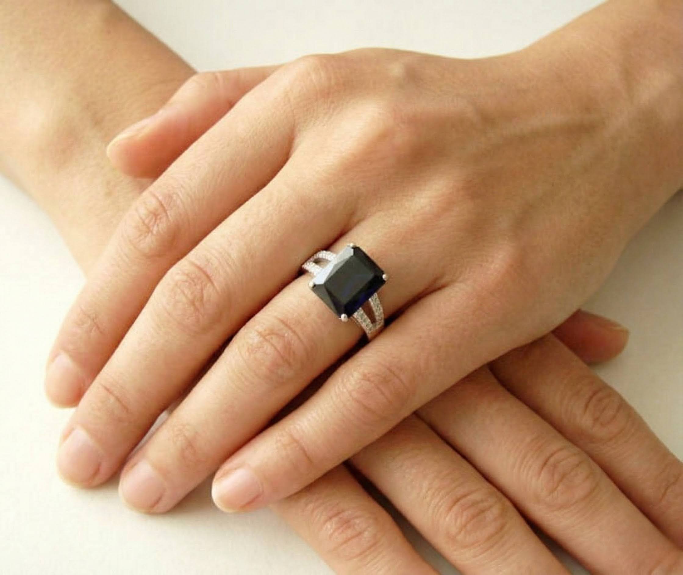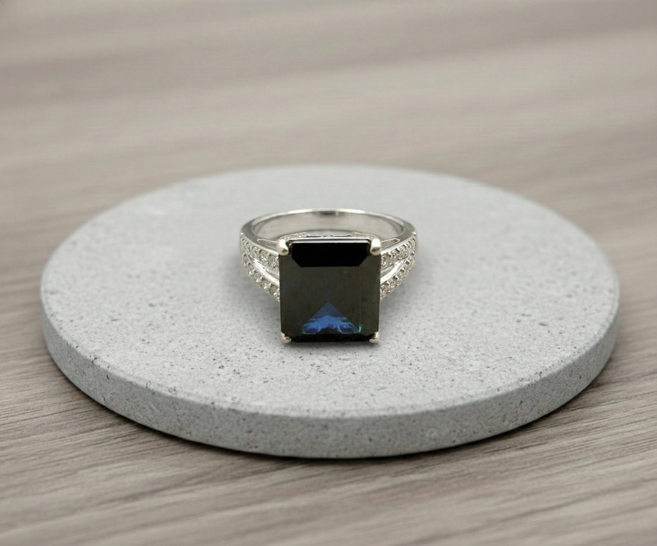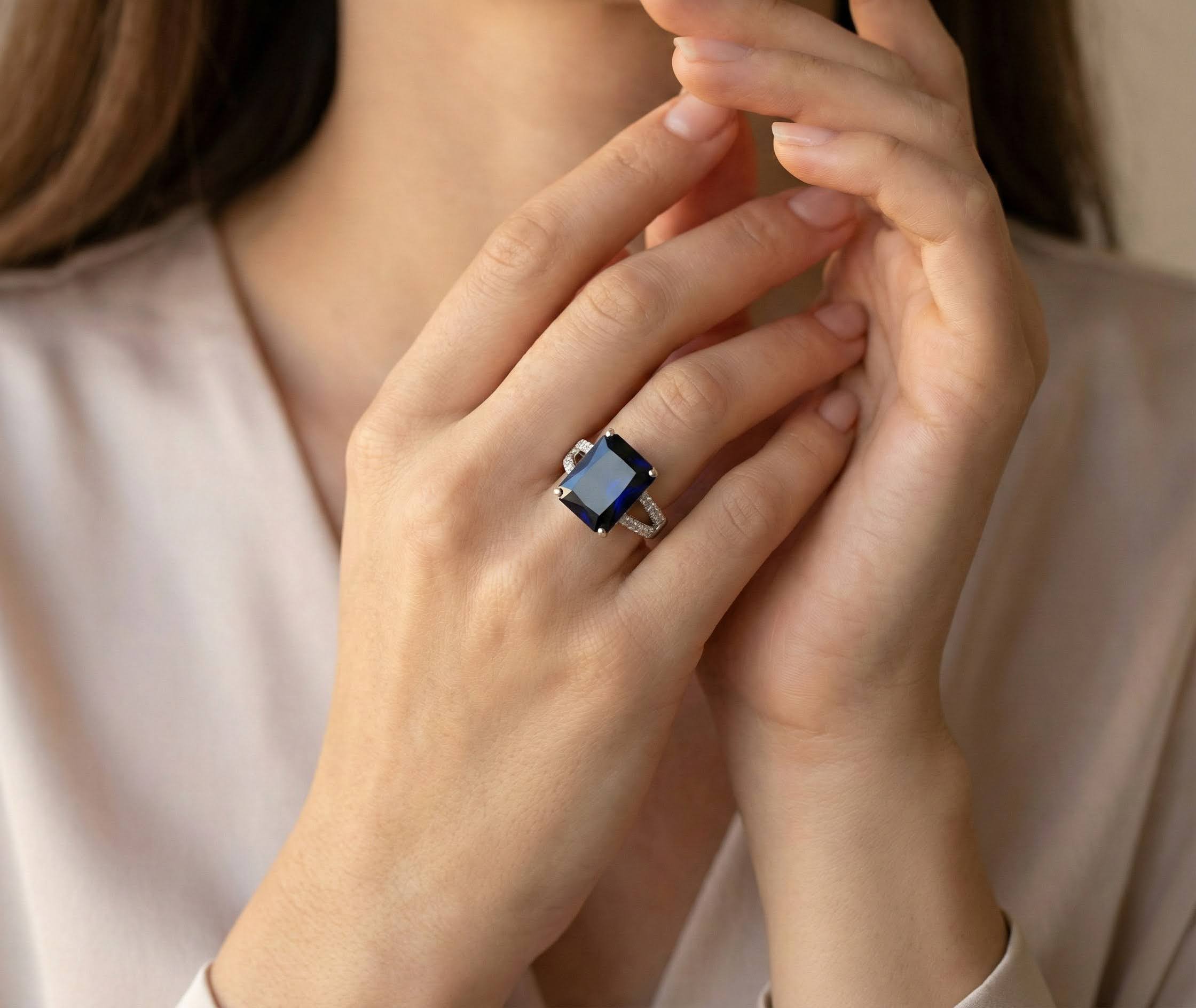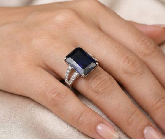 Deze zilveren ring met synthetische saffier is een prachtig sieraad.